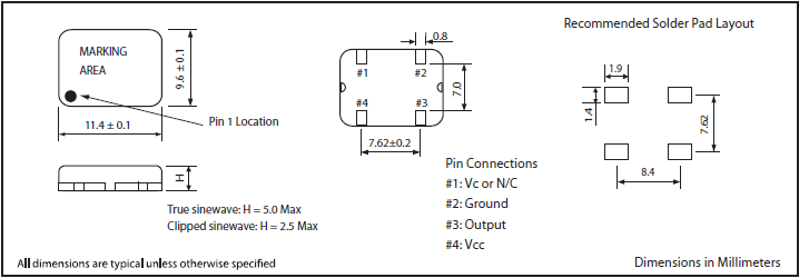 Input Current : 30 mA maximum (HCMOS) ; 2.0 mA maximum (Sinewave)